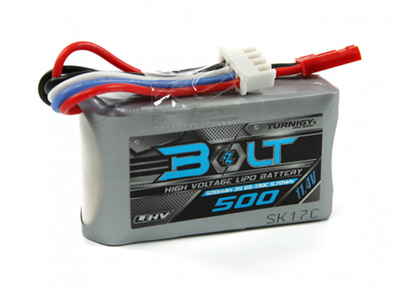 Las baterías de polímero de litio de alto voltaje serie de Turnigy Bolt están aquí, listos para llevar a cabo el siguiente nivel de potencia a su modelo de alto rendimiento. Turnigy Bolt se construyen a lo absoluto más alto de estándares para proporcionar un rendimiento nivel de competencia. Con características tales como el oro plateado cables de equilibrio, bañado en plata alambres de descarga y una matriz reformulada para permitir que usted cargue con seguridad les permitió llegar a 4.35 voltios por celda! Estas baterías son simplemente incomparable con cualquier otro en el rendimiento y calidad de construcción!