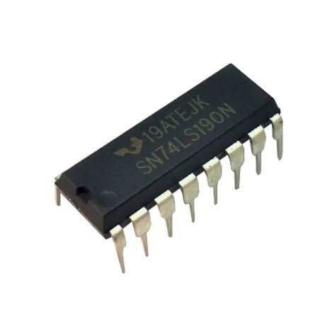 El 74LS190 es un contador binario descendente y ascendente utiliza el pin de reloj para poder aumentar o disminuir la salida de forma binaria,  también tiene 4 entradas para dar de forma paralela a la salida del circuito integrado, la configuración de paralela o serie se puede controlar.