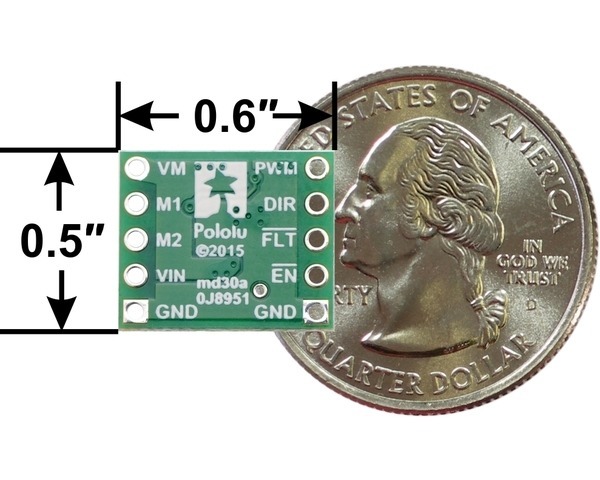 Esta placa de conexión compacta para el controlador de motor MAX14870 de Maxim ofrece un amplio rango de voltaje de funcionamiento de 4.5 V a 36 V y puede suministrar un continuo 1.7 A (2.5 A pico) a un solo motor de CC cepillado. Cuenta con una interfaz simple de velocidad / dirección de dos pines y protección incorporada contra voltaje inverso, bajo voltaje, sobrecorriente y sobretemperatura.