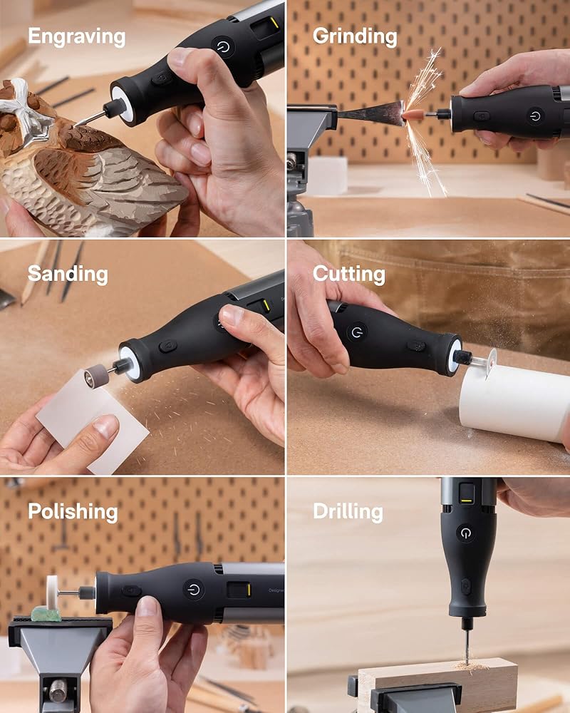 Precisión de alta velocidad para grabado y acabado de impresión 3D: impulsado por un motor sin escobillas de calidad profesional, este bolígrafo de grabado giratorio ofrece 5000–35 000 RPM con un par suave y estable.