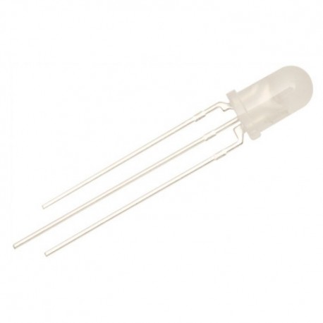 Diodo LED 5mm Bicolor Rojo-Verde, 40mA (20mA por cada color), de 3 pines con ánodo común y un ángulo de visión máximo de 25º.