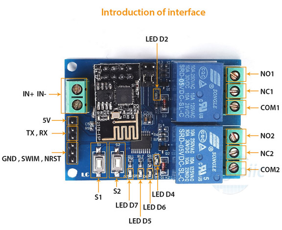 • ► Control Remoto a través de WiFi: Gracias a su integración con el chip ESP8266, este módulo permite el control remoto de dispositivos mediante una red WiFi, utilizando una aplicación móvil compatible.