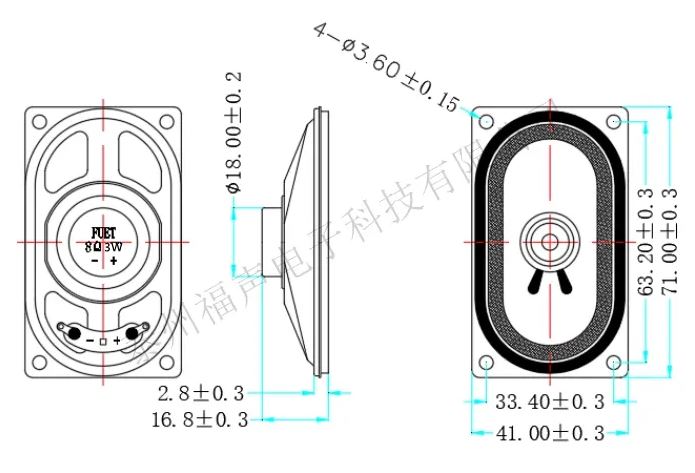 Nombre: 3 W 8R 4070 altavoz 8 ohmios 3 vatios Tamaño: 40*70MM Espesor: 20mm